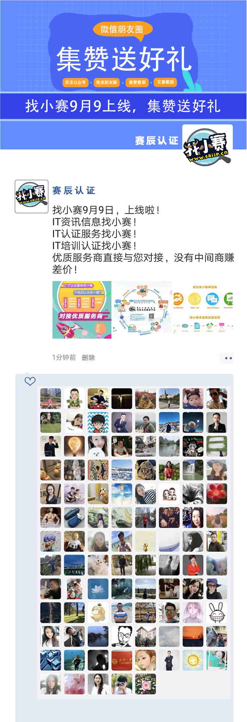 分享找小賽指定活動(dòng)圖片到朋友圈集贊并附上相應(yīng)文字: