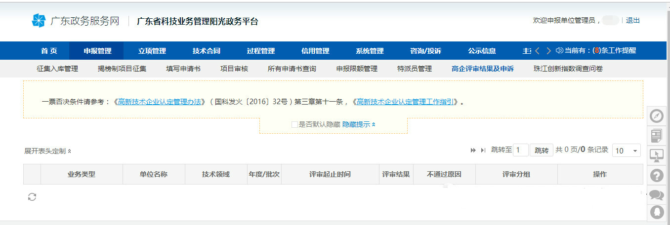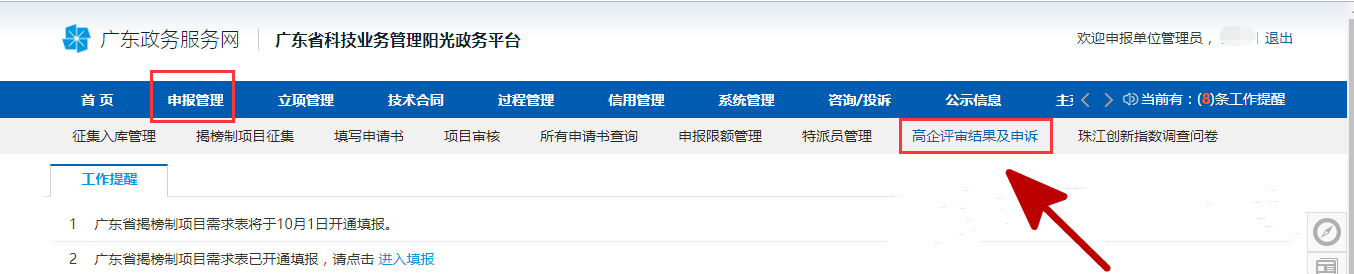 或者點(diǎn)擊“申報(bào)管理”然后選擇“高企評(píng)審結(jié)果及申述”