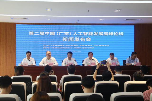 2019年10月11日下午,第二屆中國(廣東)人工智能發(fā)展高峰論壇新聞發(fā)布會在南沙傳媒中心召開。廣東省科技廳黨組成員、副廳長楊軍,廣州市南沙區(qū)委常委、常務(wù)副區(qū)長謝明,華為技術(shù)有限公司廣東企業(yè)華為云業(yè)務(wù)部解決方案部部長胡毅,科大訊飛華南公司副總裁吳駿華,廣州國際人工智能產(chǎn)業(yè)研究院首席技術(shù)官劉琪等主承辦單位代表及30多家主流媒體記者近百人參與了新聞發(fā)布會。