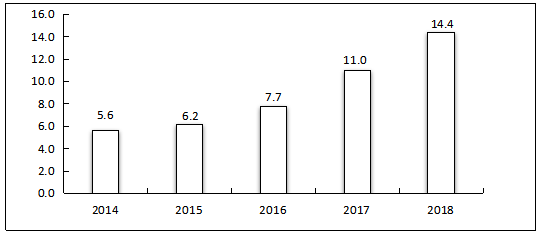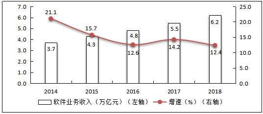 圖4 2014年-2018年我國軟件業(yè)務(wù)收入情況