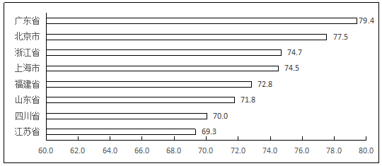 圖8 2019年領(lǐng)先省份綜合發(fā)展指數(shù)排名情況