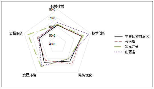 圖11 2019年排名前四中間省份雷達(dá)圖