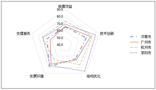 圖15 2019年排名前四重點(diǎn)城市雷達(dá)圖