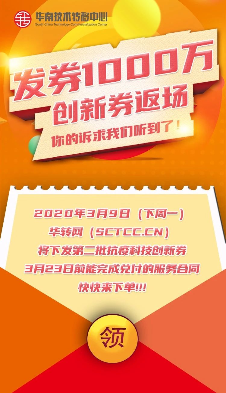 終于,新一批創新券1000萬元額度確定!將于39日(周一)9:00準時發放。執行標準參照抗疫創新券,珠三角40%,粵東西北45%(溫馨提醒:兌付截止時間為323,如果在規定時間前無法完成兌付服務,建議等待申請2020年度創新券使用。)